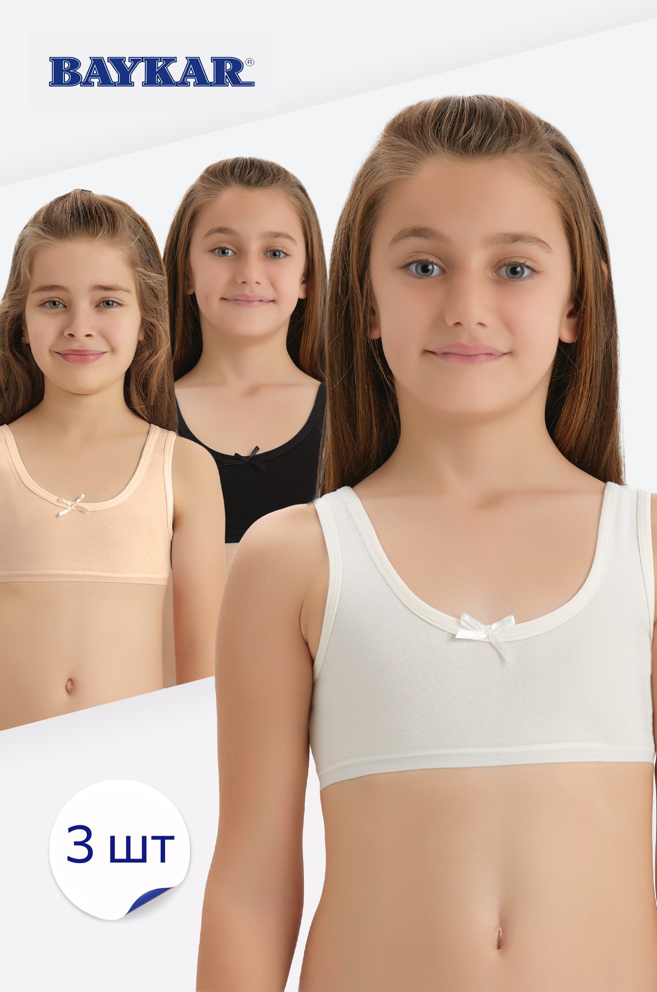 Топ бюстье, в наборе 3 штуки – это отличный подарок для юной красавицы. 95% хлопок, 5% эластан