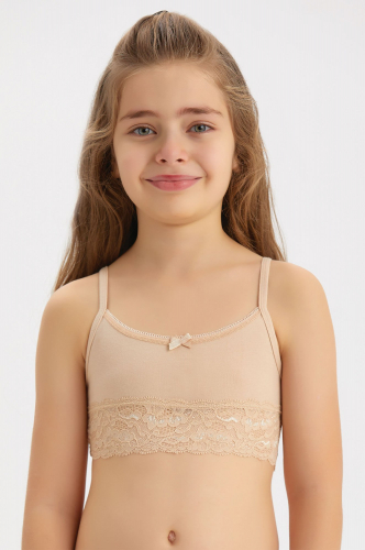 Классический подростковый бюстик из трикотажа с кружевом дарит идеальную посадку. Мягкие тонкие лямки не давят и не спадают во время активных движений.