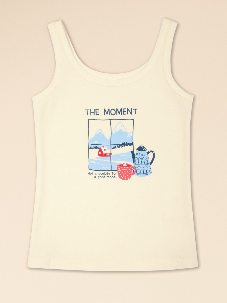 Майка детская. Майка из новой коллекции бренда Pelican с надписью The moment. Hot chocolate for good mood (Момент. Горячий шоколад для хорошего настроения) и стильным принтом по мотивам уютной зимы – новинка, которая порадует ребенка и подарит комфорт. Модель универсальная и подойдет не только для девочки, но и для мальчика. Материал, в составе которого хлопок и эластан, дарит комфорт. Он гигроскопичен, легко впитывает влагу, удерживает тепло, кожа ребенка дышит. Модель отлично сидит по фигуре, не сковывает движений. Принт со временем не трескается, при многократных стирках ткань не линяет, не теряет вида, не скатывается при носке под одеждой. Аккуратная отделка по краю проймы и горловине. Ровные швы не натирают при ежедневной носке в детский сад, на прогулку или в путешествии. Широкий размерный ряд позволит подобрать точный размер по возрасту и комплекции ребенка. Нейтральный телесный цвет подходит к разным моделям коллекции – трусам, пижаме, под футболку или кофту. Майка детская для девочек – это вариант подарка в комплекте с трусами на любой праздник, для детской тематической фотосессии, семейного фото.Состав: 93%хлопок 7%эластанВозрастная группа: Kids-JuniorСезон: ЗимаГод: 2023Пол: Девочки