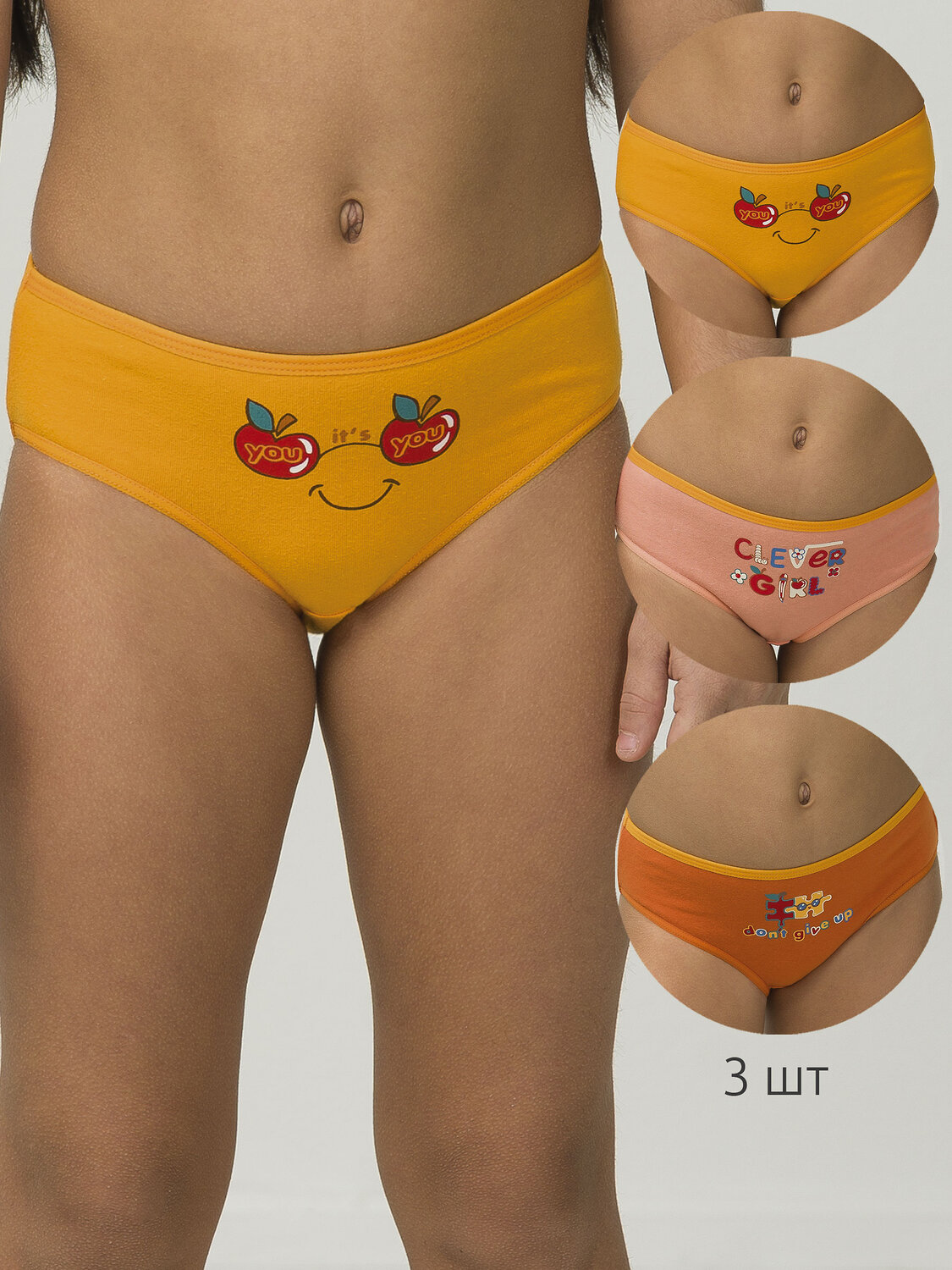 Детские трусы слипы для девочки, набор 3 штуки. Составляя детский гардероб, очень важно подобрать комфортные и удобные трусы для детей и подростков для повседневной носки на каждый день и сна. Трикотажные детские трусики слипы с эластичной резинкой по талии надежно держатся на теле ребенка, не скручиваются, не закатываются и не сползают, а дышащая ткань позволяет избежать натирания нежной кожи. Добавление эластана делает трикотажные трусы эластичными и более удобными при надевании. Плотная, но свободная модель и средняя посадка не сковывают движения девочки, что важно маленьким детям. Милое и практичное детское нижнее белье порадует родителей долговечностью – хлопковые повседневные трусы не боятся многочисленных стирок, не растянутся и не полиняют. Детская одежда для девочек должна отвечать моде, комплект представляет только молодежные цвета, которые порадуют и поднимут настроение современной модницы.