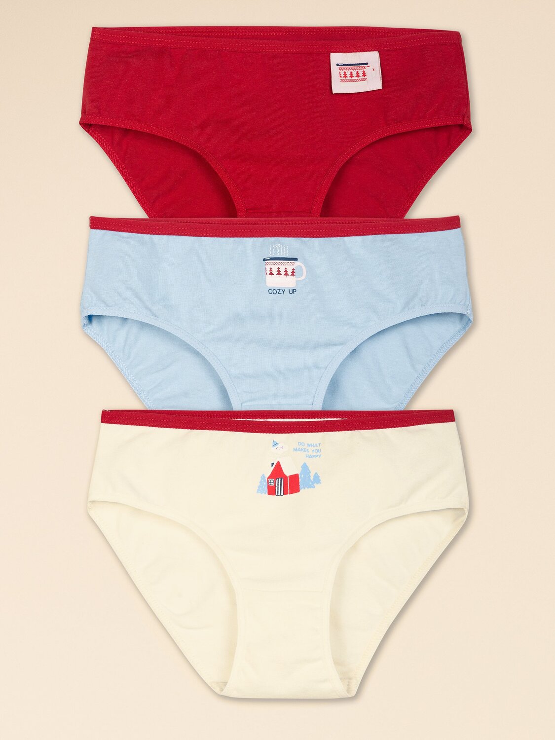 Трусы для девочек набор из 3 штук, цветные с принтом из новой коллекции бренда Pelican. Трусики слипы со средней посадкой для девочек удобные для ежедневной носки, имеют в составе материала хлопок и эластан, что комфортно для нежной кожи ребенка. По талии и нижнему краю эластик - резинка с ровным краем, не сдавливает, в течение дня не доставляет неудобства ребенку. Прочный принт по мотивам уютной зимы – нанесен на ткань и на бирку. Трусы для девочек имеют широкий размерный ряд, поэтому подойдут как в качестве трусов для девочек-подростков, в школу, так и для дошкольного возраста, в детский сад. Трусики слипы идеально подходят для ежедневной носки, резинка со временем не растягивается, ткань в процессе многократных стирок не линяет, принт не трескается. Трусы подходят к майке из коллекции Зима. В белье от бренда Пеликан ребенок чувствует себя комфортно, модель не доставляет неудобства при носке. Трусы для девочки слипы представлены в трех цветах – красный, голубой, бежевый (телесный). Универсальность цветов – отличный вариант для светлой и темной одежды. Набор трусов можно подарить в качестве подарка по особому случаю и с заботой о ребенке. Составить детский комплект нижнего белья для подарков на любой праздник или устроить фотосессию в стиле зимние каникулы – легко с новой коллекцией бренда.