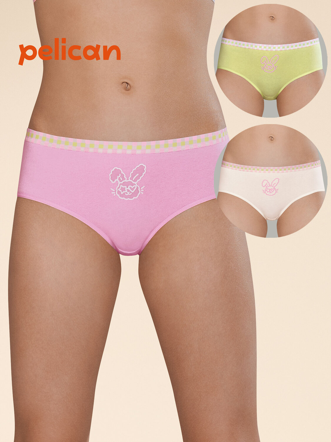 Комплект трусов для девочки из 3-х шт. Слипы средней посадки выполнены из ткани с высоким содержанием хлопка — модель мягкая, гипоаллергенная и прекрасно пропускает воздух. Благодаря эластану слипы для девочки надолго сохраняют отличную форму, даже после многочисленных стирок. Качественная ткань и анатомически правильный крой обеспечивают комфортную посадку на теле. Мягкая резинка исключает раздражение и трение. В комплект входят трусы детские для девочки трёх нежных оттенков, которые обязательно понравятся любой девочке. Трусики для девочки по переду украшены забавным принтом в виде зайчика в очках. Резинка трусов также декорирована милым принтом в клетку. Принты эластичные и стойкие, отлично переносят частые стирки. Хлопковые трусы подходят девочкам дошкольного возраста. Помните о правильном уходе за изделием: рекомендуется стирать при температуре не выше 30 °C, без предварительного замачивания, с изнанки. Это поможет сохранить качество и цвет белья на длительное время. Не забывайте о выборе правильного размера. Используйте таблицу размеров на фотографии, чтобы выбрать подходящий вариант для вашей девочки. Обратите внимание, что цвет товара на экране вашего устройства может отличаться от реального.
