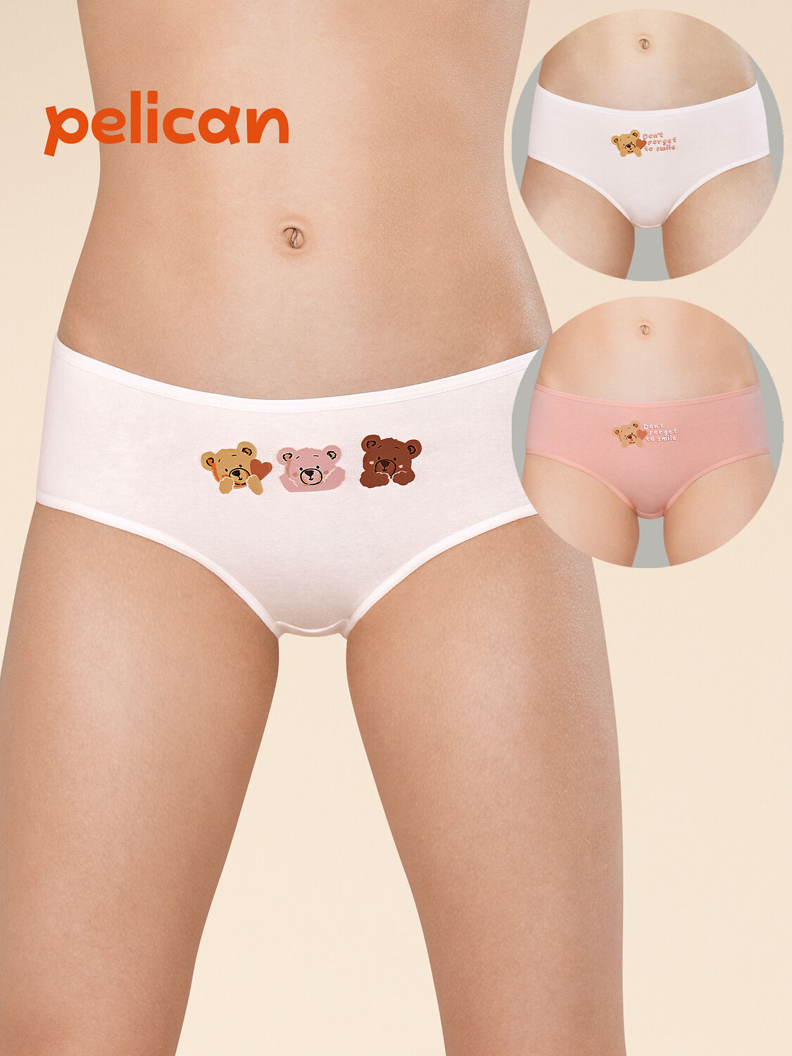 Комплект трусов для девочки из 3-х шт. Слипы с высокой посадкой выполнены из ткани с высоким содержанием хлопка — модель мягкая, гипоаллергенная и прекрасно пропускает воздух. Благодаря эластану слипы для девочки надолго сохраняют отличную форму, даже после многочисленных стирок. Качественная ткань и анатомически правильный крой обеспечивают комфортную посадку на теле. Мягкая резинка исключает раздражение и трение. В комплект входят трусы детские для девочки двух трендовых оттенков, которые обязательно понравятся любой девочке. Трусики для девочки украшены милыми принтамив виде медвежат, на двоих из них есть надпись (перевод «не теряй свою улыбку»). Принты эластичные и стойкие, без проблем переносят частые стирки. Хлопковые трусы подходят девочкам дошкольного возраста. Помните о правильном уходе за изделием: рекомендуется стирать при температуре не выше 30 °C, без предварительного замачивания, с изнанки. Это поможет сохранить качество и цвет белья на длительное время. Не забывайте о выборе правильного размера. Используйте таблицу размеров на фотографии, чтобы выбрать подходящий вариант для вашей девочки. Обратите внимание, что цвет товара на экране вашего устройства может отличаться от реального.