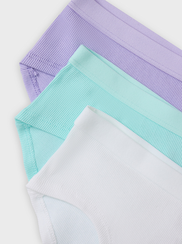 Мультипак (3 шт.) стильных трусиков-шортов из трикотажной рибаны – в мелкий рубчик. Нижние срезы подогнуты, на верхнем срезе – жаккардовая тесьма. Актуальный выбор!