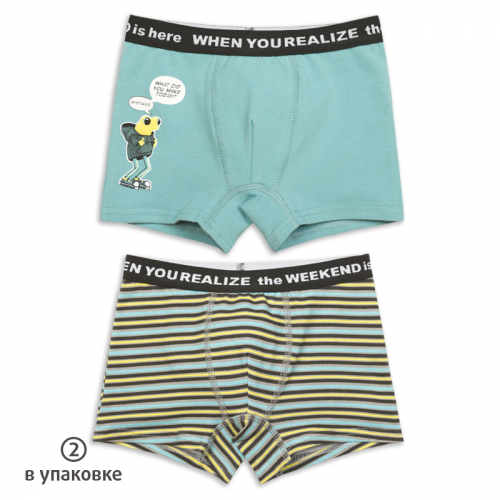 Состав: низ: 93%хлопок 7%эластан, низ2: 93%хлопок 7%эластанОписание: Трусы шорты для мальчиков. В комплекте 2 изделия. По талии широкий тканый эластик с вытканным вкруг текстом. Перевод Когда ты понимаешь, что выходной уже настал! Прочный принт. Перевод Ты что сегодня делал? ОШИБКИ. Декоративная обработка в области гульфика.