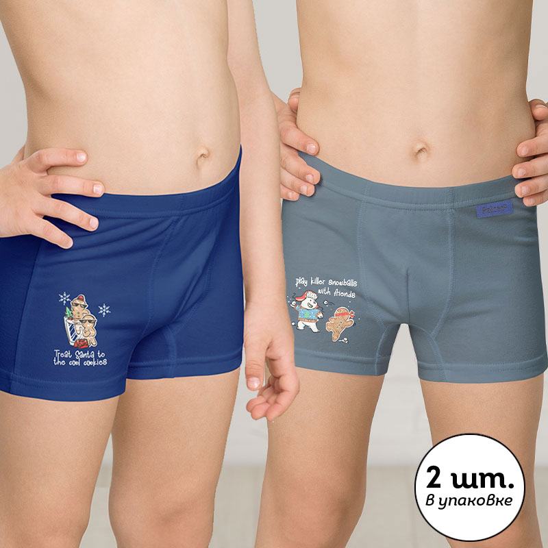 Состав: низ: 93%хлопок 7%эластан, низ2: 93%хлопок 7%эластанОписание: Детские трусы шортики для мальчика, набор 2 штуки с новогодним принтом. Составляя детский гардероб, очень важно подобрать комфортные и удобные трусы для детей и подростков для повседневной носки на каждый день и сна. Детские трусы шорты для подростка с эластичной резинкой по талии надежно держатся на теле ребенка, не скручиваются, не закатываются и не сползают, а дышащая ткань позволяет избежать натирания нежной кожи. Добавление эластана делает трикотажные трусы боксеры эластичными и более удобными при надевании. Плотная, но свободная модель и средняя посадка не сковывают движения парня, что важно маленьким детям. Милое и практичное детское нижнее белье порадует родителей долговечностью. Хлопковые подростковые повседневные трусики шортики не боятся многочисленных стирок, не растянутся и не полиняют. Детская одежда для мальчиков должна отвечать моде, комплект трусы для малыша представляет только молодежные цвета, которые порадуют и поднимут настроение современному мальчику.