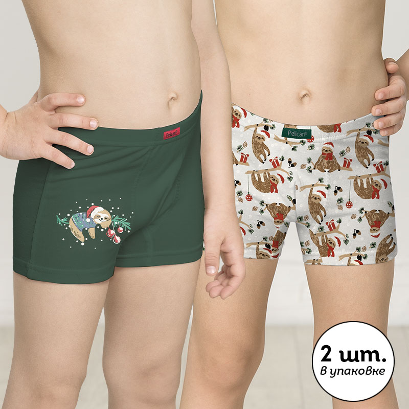 Состав: низ: 93%хлопок 7%эластан, низ2: 93%хлопок 7%эластанОписание: Детские трусы шортики для мальчика, набор 2 штуки с новогодним принтом. Составляя детский гардероб, очень важно подобрать комфортные и удобные трусы для детей и подростков для повседневной носки на каждый день и сна. Детские трусы шорты для подростка с эластичной резинкой по талии надежно держатся на теле ребенка, не скручиваются, не закатываются и не сползают, а дышащая ткань позволяет избежать натирания нежной кожи. Добавление эластана делает трикотажные трусы боксеры эластичными и более удобными при надевании. Плотная, но свободная модель и средняя посадка не сковывают движения парня, что важно маленьким детям. Милое и практичное детское нижнее белье порадует родителей долговечностью. Хлопковые подростковые повседневные трусики шортики не боятся многочисленных стирок, не растянутся и не полиняют. Детская одежда для мальчиков должна отвечать моде, комплект трусы для малыша представляет только молодежные цвета, которые порадуют и поднимут настроение современному мальчику.