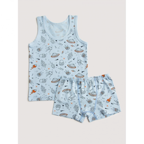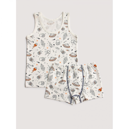 .К75-66 КТ Комплект майка + трусы боксеры, "Космос" на белом фоне.