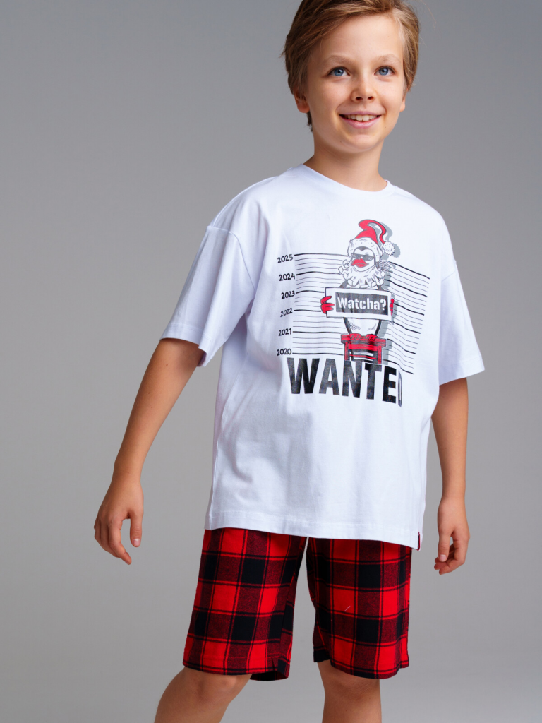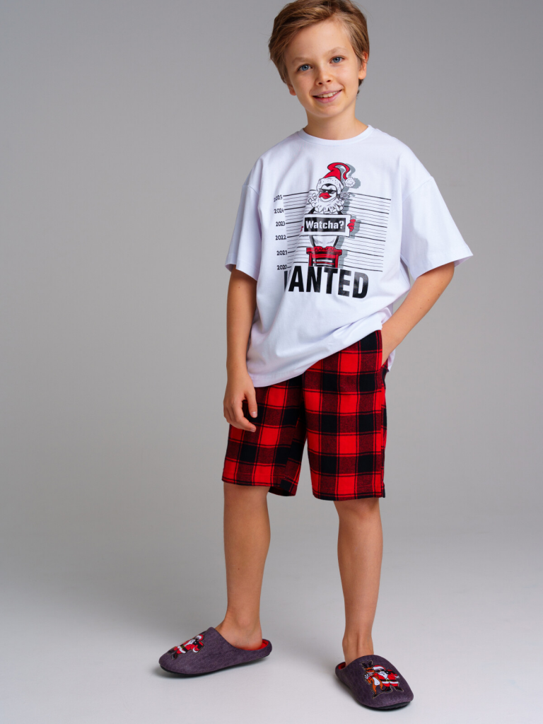 Пижама: футболка, шорты. Трикотажная футболка силуэта oversize. Высокое содержание хлопка 95%. Благодаря наличию эластана в составе ткани, изделие проще в уходе и держит форму. Фланелевые шорты классического прямого кроя с карманами. Эластичный пояс с тесьмой позволяет легко надевать брюки и утягивать до комфортной посадки.