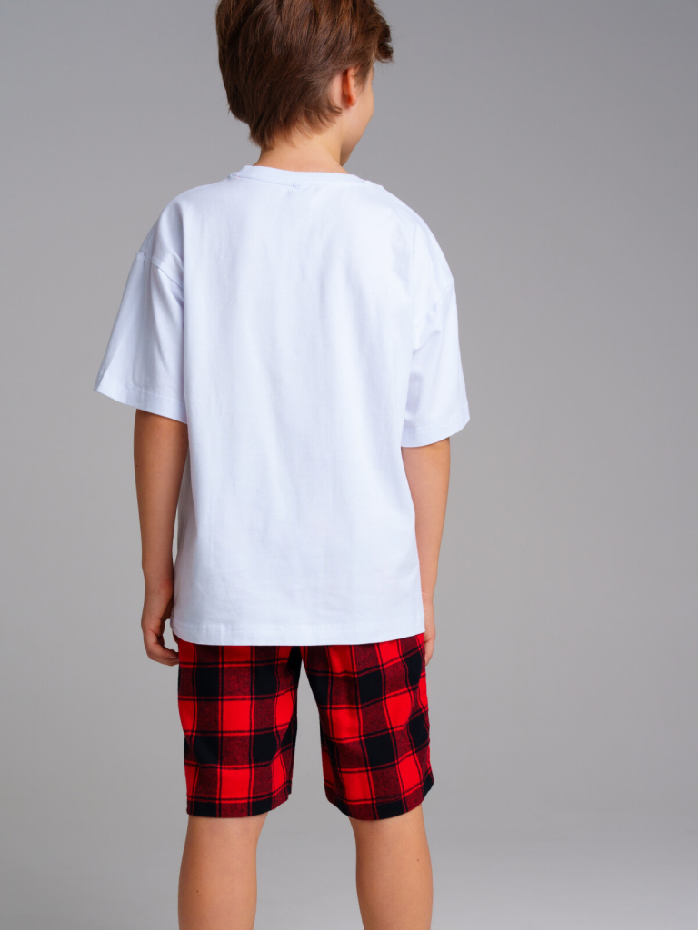 Комплект для мальчиков: фуфайка (футболка) трикотажная, шорты текстильные белый,черный,красный 42316022