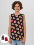 Удлиненная пройма и углубленная горловина с обработкой мягкой бейкой предотвращают натирание и дискомфорт. Майка легко сочетается с шортами, брюками или спортивной одеждой, подходя для прогулок, занятий спортом или отдыха дома. Практичный крой и качественные материалы делают её незаменимой в детском гардеробе.
