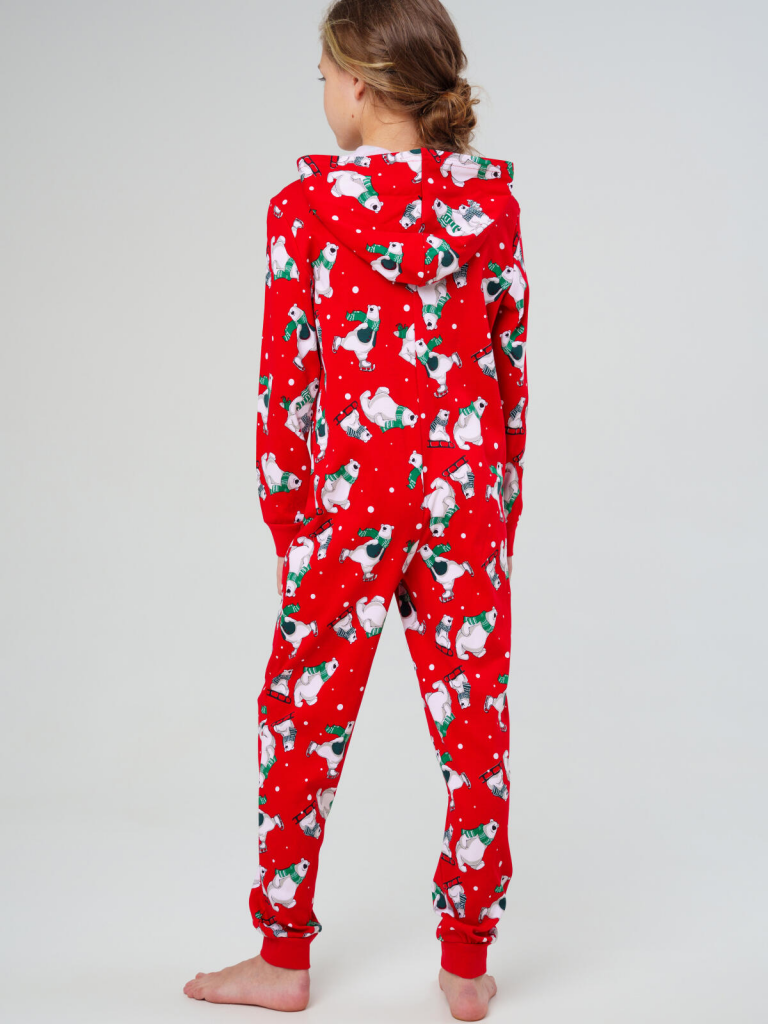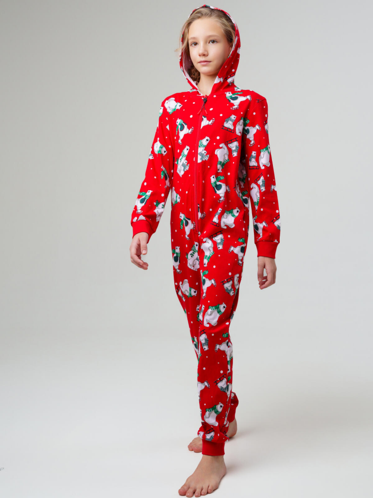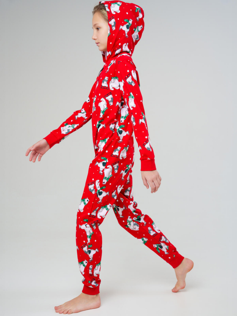 Красная пижама-комбинезон для девочек и мальчиков от PlayToday — это яркая и удобная модель, созданная для комфортного сна и домашних игр. Такой комбинезон незаменим в прохладное время года: он полностью закрывает тело, мягко согревает и при этом не стесняет движений.Особенности модели:+ застёжка на молнию по всей длине — позволяет легко и быстро переодеться даже самым активным детям+ манжеты из риба на рукавах и по низу брюк — обеспечивают плотное прилегание, сохраняют тепло+ капюшон с контрастной подкладкой — добавляет стильный акцент и создаёт уютный домашний образ+ нет карманов — ничего не мешает во время сна, исключается риск давления или натирания+ мягкий хлопковый трикотаж — дышащая ткань, приятная к телу, подходит даже для чувствительной кожи ребёнкаКогда носить:Эта пижама-комбинезон — идеальный выбор для сна, отдыха и домашних вечеров. Её можно надеть после ванны, взять с собой в гости или на зимние каникулы. Яркий принт понравится детям, а практичные детали оценят родители.Совет по стилю от PlayToday:Добавь к комбинезону уютные домашние тапочки PlayToday или мягкие носки — получится полный комплект для комфортного сна и отдыха.Размерный ряд: 128-176 см — рассчитан на детей младшего и среднего школьного возраста, а также подростков.Яркая и тёплая пижама-комбинезон для девочек и мальчиков от PlayToday — это удобный, практичный и модный вариант для сна и дома, который понравится детям и подарит спокойствие родителям.