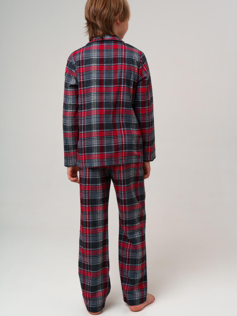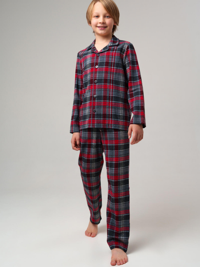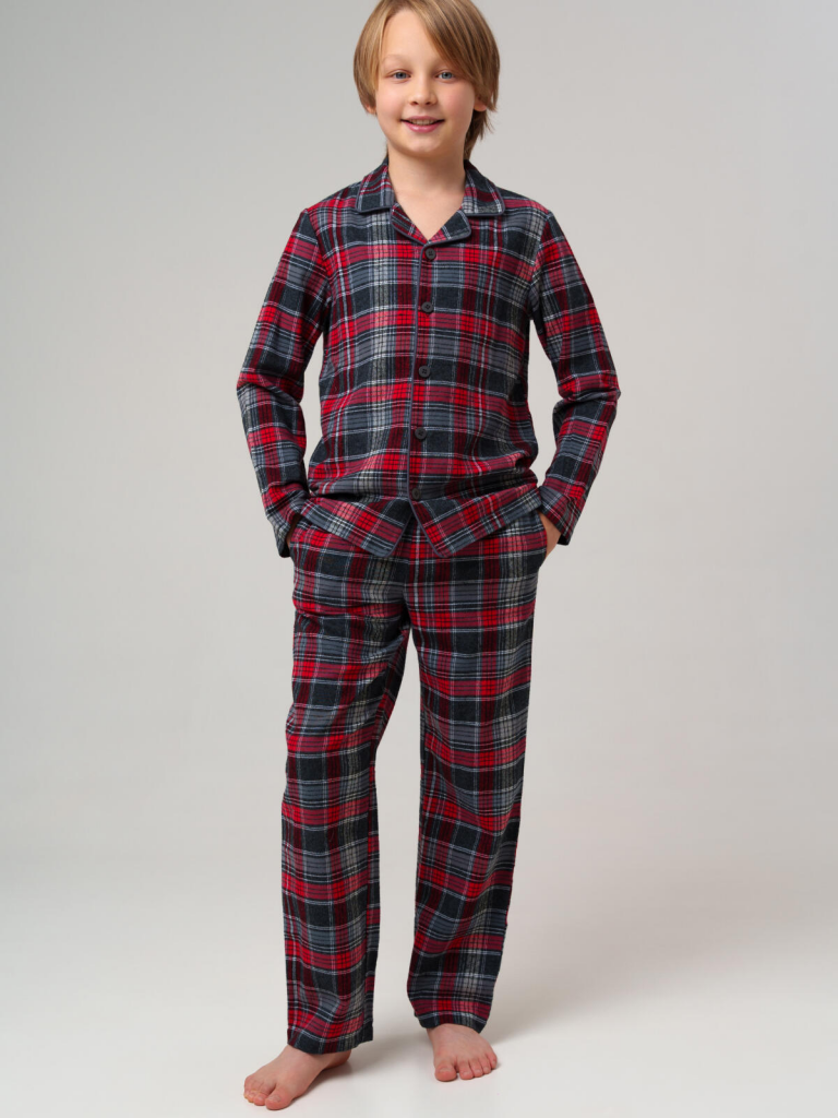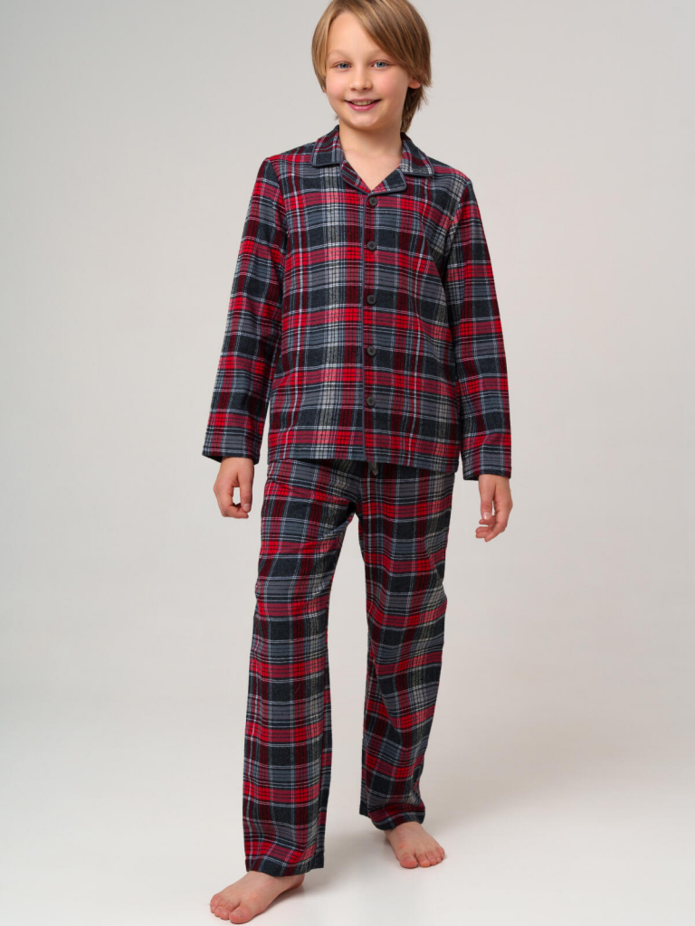 Стильная подростковая пижама для мальчика от PlayToday — удобный комплект из мягкой фланели с микроначёсом. В набор входит рубашка с пуговицами и двумя карманами и прямые брюки на резинке. Теплая и уютная ткань обеспечивает комфортный сон и подходит для домашнего отдыха в прохладное время года.Преимущества модели:+ натуральная фланель с микроначёсом — мягкая, дышащая и приятная к телу+ застёжка на пуговицы — классический и удобный вариант+ два накладных кармана — практичное решение для дома+ пояс на резинке — удобная посадка без давления+ современный клетчатый дизайн — стильный вариант для мальчиков и подростковКогда и как носить:Пижама идеально подойдёт для сна, отдыха дома, поездок на дачу и гостевых ночёвок. Благодаря стильному клетчатому принту она выглядит современно и может использоваться как домашний костюм.Совет по стилю:Сочетайте пижаму с мягким халатом и уютными тапочками PlayToday, чтобы создать полный домашний образ.Размеры: 128-176 см — для мальчиков от 8 лет и старше. Подходит для школьников и подростков.Стильная клетчатая фланелевая пижама для мальчиков от PlayToday — тепло, уют и современный дизайн для сна и дома.
