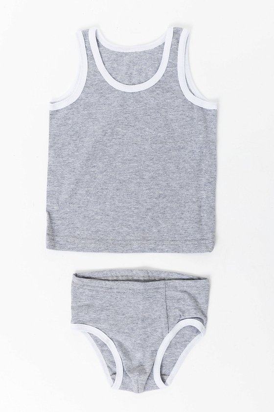Комплект нижнего белья для мальчика выполнен из кулирки, 100% хлопок. Майка с широкими бретелями имеет свободный комфортный крой. Плавки с высокой посадкой и резиной по талии. По горловине, проймам и «ножкам» комплекта обработка бейкой.