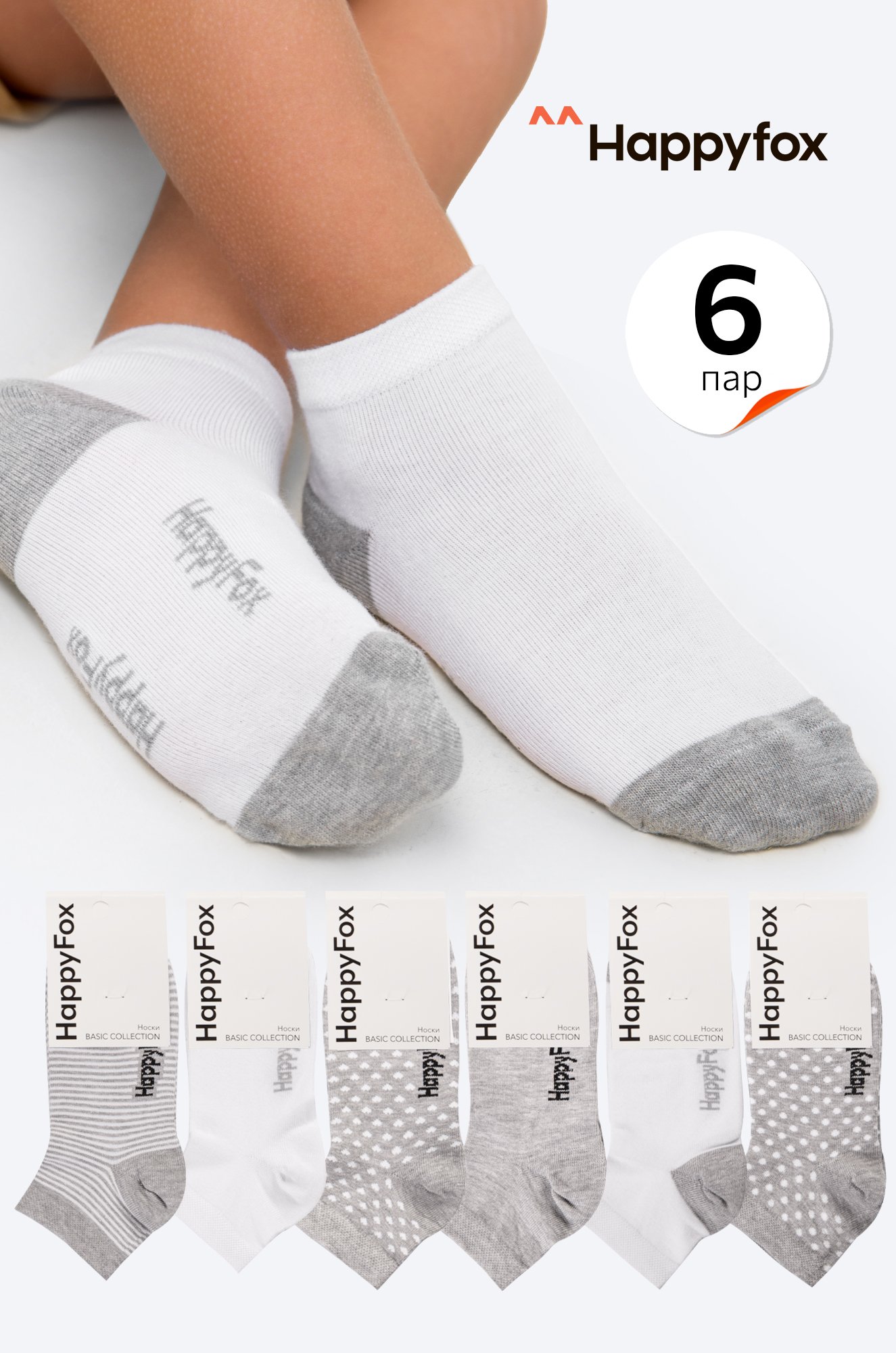 Комфортная база на каждый день! Набор детских носков из 6 пар для девочек и мальчиков выполнен из мягкого хлопка. Легкая пряжа отлично пропускает воздух и делает носочки для детей и подростков идеальными для летних и осенних дней. Носки представлены в серо-белой цветовой гамме и украшены разными рисунками.