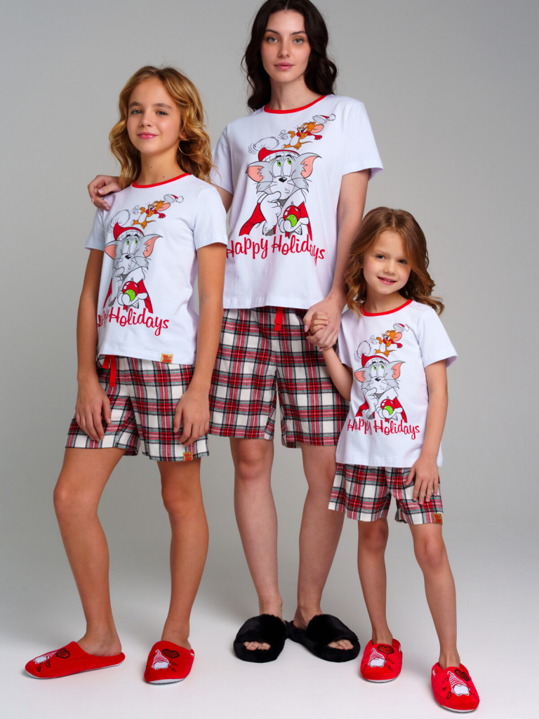 Пижама: футболка, шорты. Трикотажная футболка с высоким содержанием хлопка 95%. Благодаря наличию эластана в составе ткани, изделие проще в уходе и держит форму. Фланелевые шорты классического прямого кроя. Эластичный пояс с тесьмой позволяет легко надевать брюки и утягивать до комфортной посадки.