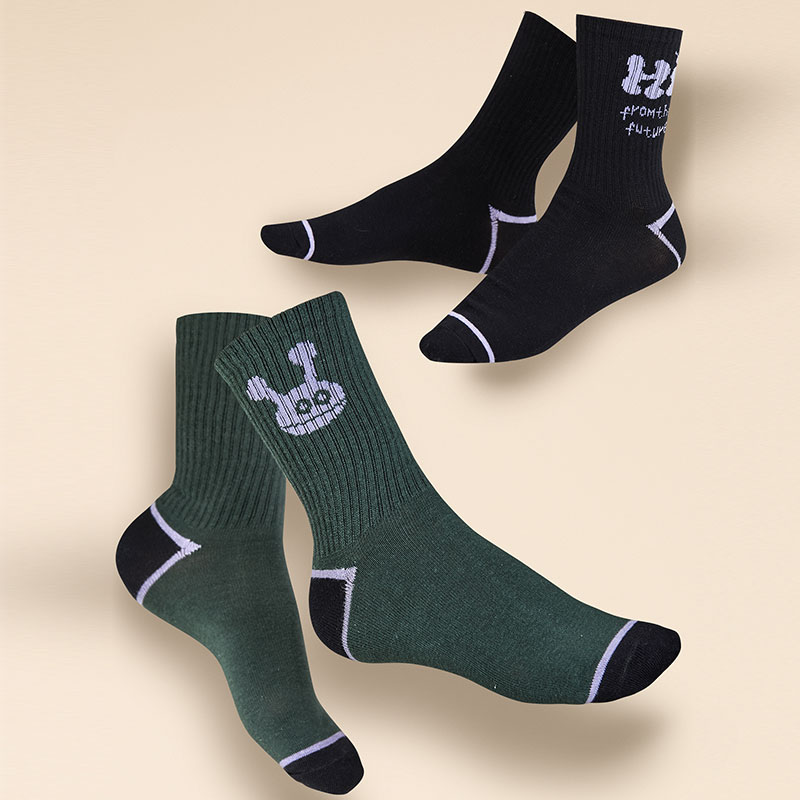 Состав: 76%хлопок 21%полиэстер 3%эластанОписание: Стильный набор детских носков из двух пар. Носки длинные - трендовая модель. Мягкая декоративная резинка не передавливает ногу, при этом носки надёжно зафиксированы и не сползают. В составе ткани преобладает хлопок — носки мягкие, гипоаллергенные и хорошо пропускают воздух. Благодаря полиэстеру и эластану носки износостойкие, хорошо тянутся, прекрасно переносят многочисленные стирки. Смешные носки подходят для повседневной носки в школу, детский сад, а также для спортивных тренировок и прогулок. Набор носков детских включает две пары с разными узорами. Обе пары украшает вытканный узор: на одной — в виде инопланетянина, на второй — в виде надписи, перевод: «привет из будущего». Носки прикольные станут отличным дополнением стильного образа. Помните о правильном уходе за изделием: рекомендуется стирать при температуре не выше 30 °C, без предварительного замачивания, с изнанки. Это поможет сохранить качество и цвет носков на длительное время. Не забывайте о выборе правильного размера. Используйте таблицу размеров на фотографии, чтобы выбрать подходящий вариант для вашего ребёнка. Обратите внимание, что цвет товара на экране вашего устройства может отличаться от реального.