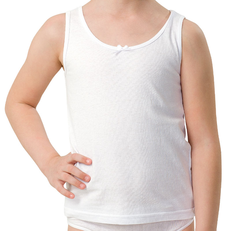 Состав: 100%хлопокОписание: Белая бельевая майка для девочки. Майка изготовлена из 100% хлопка и не требует особого ухода, не растягивается после стирки. Классический крой и белый цвет делают майку универсальной в носке: можно использовать как нательное белье, домашнюю одежду или как часть повседневного гардероба. Изюминка майки - деликатный атласный бантик.