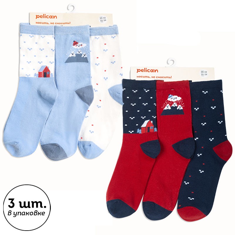 Состав: 76%хлопок 21%полиэстер 3%эластанОписание: Носки детские с рисунком, набор из 3 штук. Носочки универсальны как для девочек, так и для мальчиков. Носки выполнены из качественного хлопка с добавлением эластана. Ткань пропускает воздух и обеспечивает комфорт для ножек ребенка. Материал прочный, устойчив к пилингу (образованию катышков). При многократной стирке модель не деформируется, не садится, резинка не теряет своих качеств, а пятка остается на месте. Носки для детей облегают ступню. Мягкая, но надежная резинка отлично удерживает носки на месте. Это важно для комфорта ребенка. Такие детские носки не нужно будет постоянно поправлять, а значит не нужно будет отвлекаться от игр. Очень удобно сидят на ноге, это позволит надевать носочки с разной обувью. Носки хорошо тянутся, например, если нужно заправить в них кальсоны или брючины для сохранения тепла. Яркие, милые носочки представлены в оттенках зимы – нежные голубой и молочный, или насыщенные синий и красный. А носки с рисунками – домики, заснеженные горы, снежинки - дополнят образ и станут стильным аксессуаром для уютных семейных фотосессий. Эти носки можно надевать не только в повседневной жизни или дома, но и сочетать их с праздничными нарядами. Набор носков для детей идеально подойдет для подарка ребенку, занятий в детском саду и школе, домашних посиделок и праздников.