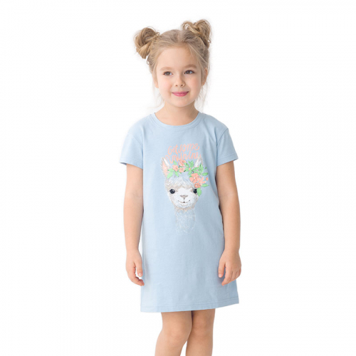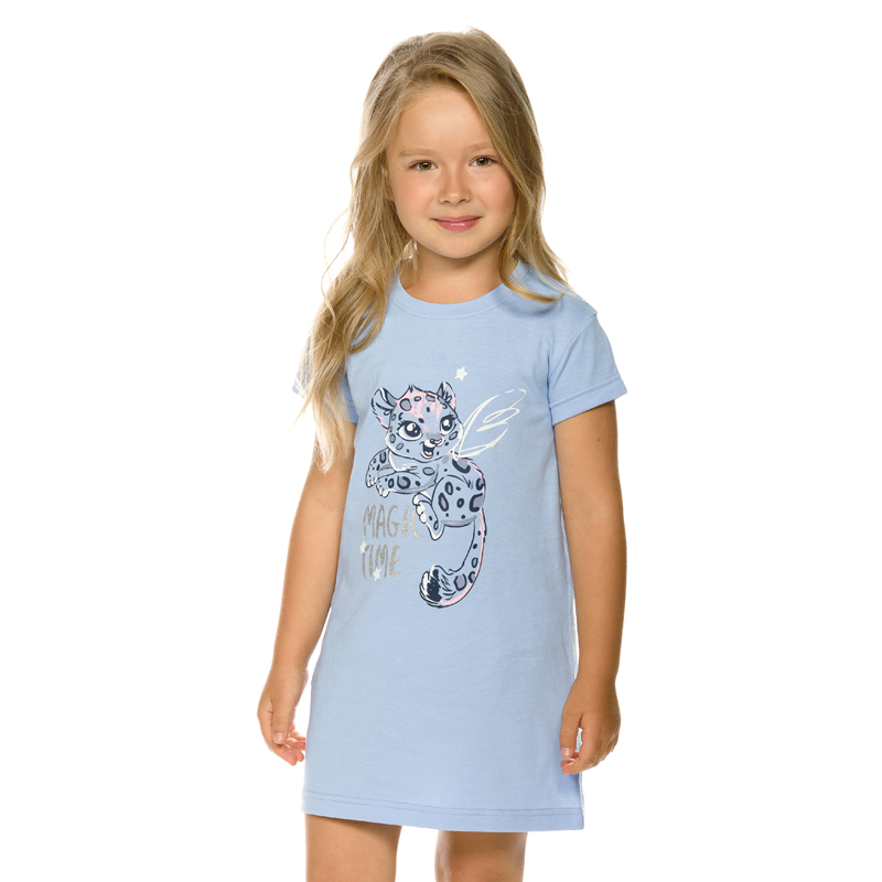 Состав: 100%хлопокОписание: Сорочка для девочек с коротким рукавом, центральный принт с серебрянным глиттером, горловина обработана пайпингом.