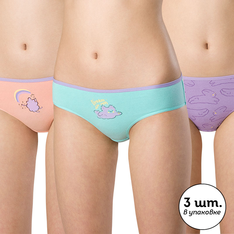 Состав: низ: 93%хлопок 7%эластан, низ2: 93%хлопок 7%эластан, низ:3 93%хлопок 7%эластанОписание: При выборе белья для своего ребёнка каждая мама хочет быть уверена в его качестве и в том, что ребёнку будет комфортно. Комплект (3 шт.) трусов для девочки полностью соответствует этим требованиям. Слипы средней посадки выполнены из ткани с высоким содержанием хлопка — модель мягкая, прекрасно пропускает воздух, давая коже ребёнка дышать. Благодаря эластану в составе изделие надолго сохраняет отличную форму, даже после многочисленных стирок. Качественная ткань и анатомически правильный крой обеспечивают идеальную посадку на теле — ребёнку комфортно на протяжении всего дня. Мягкая резинка исключает раздражение и трение. Модель представлена в трёх актуальных оттенках: лиловый, "персиковый бисквит" и "голубой топаз". Нежные и по-настоящему красивые цвета сиреневый, персиковый и голубой, напоминают пирожные "макарон" и обязательно придутся по душе любой девочке. Слипы украшены милыми позитивными принтами. Перевод: "Мечтай Взлезай". Принты мягкие, эластичные и великолепно переносят частые стирки. Идеальный выбор д