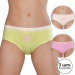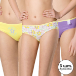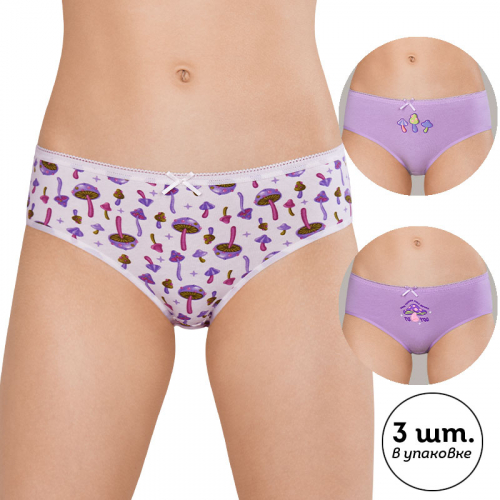 Состав: низ: 93%хлопок 7%эластан, низ2: 93%хлопок 7%эластан, низ:3 93%хлопок 7%эластанОписание: Комплект трусов для девочки из 3-х шт. Слипы с высокой посадкой выполнены из ткани с высоким содержанием хлопка — модель мягкая, гипоаллергенная и прекрасно пропускает воздух. Благодаря эластану слипы для девочки надолго сохраняют отличную форму, даже после многочисленных стирок. Качественная ткань и анатомически правильный крой обеспечивают комфортную посадку на теле. Мягкая резинка исключает раздражение и трение. В комплект входят трусы детские для девочки трёх расцветок, которые обязательно понравятся любой девочке. Трусики для девочки украшены весёлым принтом в виде грибочков, на одних трусиках есть также надпись (перевод «хорошие вещи произойдут с тобой»). Принты эластичные и стойкие, без проблем переносят частые стирки. Хлопковые трусы подходят девочкам дошкольного возраста. Помните о правильном уходе за изделием: рекомендуется стирать при температуре не выше 30 °C, без предварительного замачивания, с изнанки. Это поможет сохранить качество и цвет белья на длительное время. Не забывайте о выборе правильного размера. Используйте таблицу размеров на фотографии, чтобы выбрать подходящий вариант для вашей девочки. Обратите внимание, что цвет товара на экране вашего устройства может отличаться от реального.