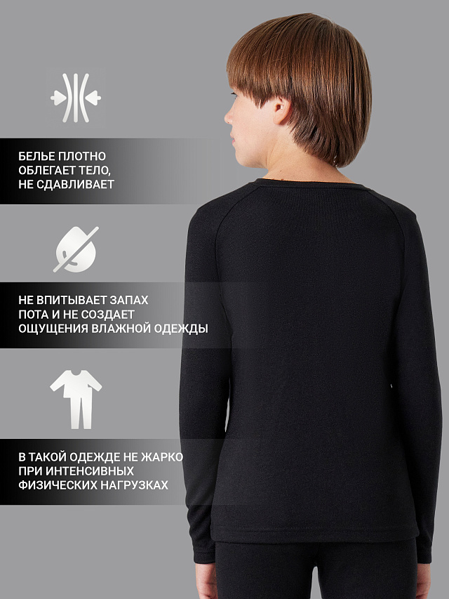 Лонгслив термо для мальчика - особая модель для того, чтобы ребенок всегда был в тепле. Полые волокна полиэстера Trevira изолируют холод и сохраняют тепло, быстро реагируют на изменения температуры тела, предотвращая перегрев и переохлаждение. Вискоза Viloft эффективно впитывает и отводит влагу, а также придаёт нитям мягкость и прочность. Все материалы безопасны для детей, не вызывают аллергию, позволяют коже дышать и надежно защищают ребенка от холода. Джемпер бархатистый, тактильно приятный, облегает тело и не заметен под повседневной одеждой. Модель не требует особого ухода, при этом долговечна и практична. Термолонгслив хорошо тянется и не стесняет движений, это идеальный вариант спортивной термо одежды для занятий туризмом, хоккеем, фигурным катанием, горными лыжами или сноубордом.