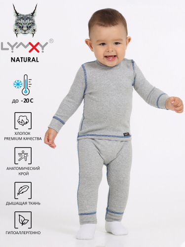 Термокомплект для малышей из лонгслива и леггинсов выполнен из двухслойного полотна на хлопковой основе. Создает эффект "сухого тепла", обеспечивая терморегуляцию тела. Внутренний хлопковый слой с начесом приятен к телу, легко впитывает влагу, не раздражает кожу. Внешний слой отводит влагу и сохраняет тепло. Имеет специальный крой для удобства ношения с подгузником. Подходит для ежедневного использования в качестве нательного белья в холодную погоду до -30 градусов при низкой физической активности. Уход: деликатная стирка при температуре до 40 градусов без замачивания.