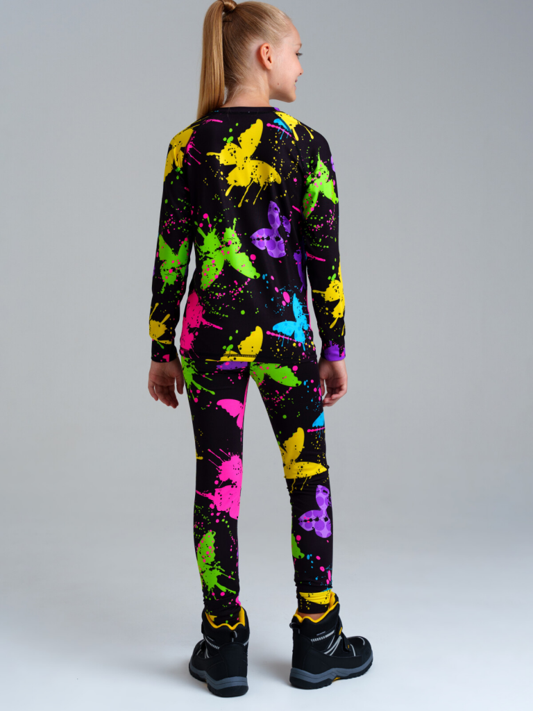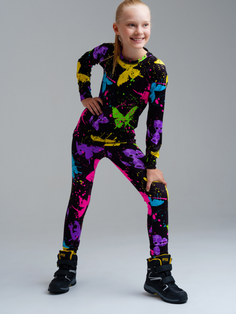 Термобелье линии NORD для девочки подростка - это удобная и функциональная одежда для зимнего сезона, предназначенная для активного отдыха и спорта. Лонгслив и кальсоны (брюки) из термо материала с микроначесом идеально подходят под зимний мембранный костюм или комбинезон, в качестве базового первого слоя в трехслойной концепции одежды для зимы. Его основная функция отводить влагу от тела, всегда оставаясь сухим. Терморегуляция обеспечивается за счет сложного смесового состава нитей и их особого запатентованного плетения. Детское яркое термобелье отличается стильным дизайном и комфортным кроем, который не сковывает движений ребенка. К тому же, оно быстро сохнет и легко стирается, что делает его идеальным для повседневного использования в холодное время года.