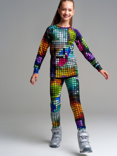 Термокомплект трикотажный для девочек: брюки, толстовка для эпизодического использования разноцветный 32321464