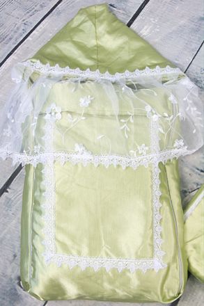 Самая яркая часть набора - это красивый конверт на выписку для новорожденных с верхом из шелковистого атласа декорированный тесьмой и нежной вуалью из органзы с кружевом. Комплект на выписку на сезон весна-лето, включает в себя изделия из фланели и тонкого ситца, как на прохладную весну, так и на жаркое лето.