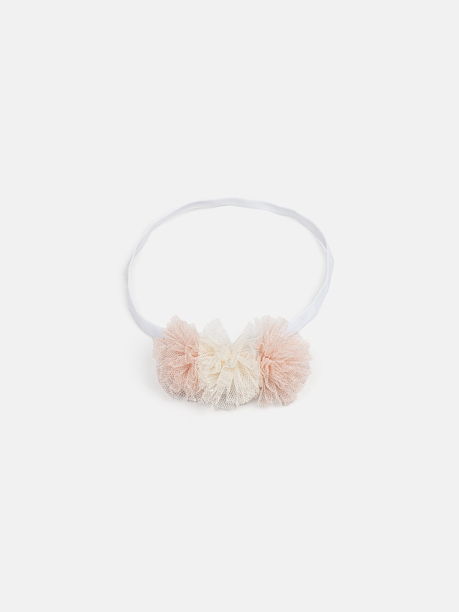Повязка из хлопковой ажурной резинки с помпонами из фатина.