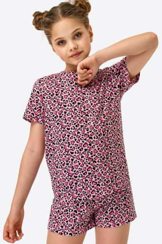 Детская пижама из хлопка подойдёт для сна, отдыха и уютных вечеров. Футболка и шорты из лёгкого трикотажа — практичный и симпатичный выбор для девочки подростка.