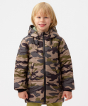 Демисезонное пальто для мальчика с принтом милитари - универсальный вариант для прогулок, походов в детский сад и на праздники. Качественный синтепоновый наполнитель плотностью 180 г/м2 согреет ребенка весной и осенью, когда погода очень переменчива. Несъемный капюшон дополнен функциональными завязками, что является оптимальным решением для защиты от ветра. Два прорезных кармана позволят носить с собой любимые игрушки и другие важные мелочи. Молния с защитой подбородка убережет нежную кожу от защипывания. Рибовые эластичные манжеты на рукавах препятствуют попаданию холодного воздуха внутрь пальто. Куртка прямого кроя обеспечит свободную посадку для легкости в каждом шаге ребенка. А при помощи утягивающих резинок на поясе внутри модели можно сделать ее более приталенной. Подклад верха куртки и капюшона - мягкий трикотаж, подклад низа и рукавов - гладкий полиэстер. Крупная стежка и дополнительная деталь в виде текстового принта на спинке сделают любые образы привлекательными и запоминающимися.
