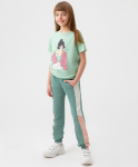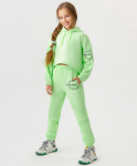 Светло-зеленые прямые брюки для девочки подростка с поясом в комплекте. Модель застегивается на молнию и пуговицу. Широкий эластичный пояс paper bag оснащен петлями для ремня и легкими сборками, что позволяет эффектно носить брюки с короткими топами или с заправленными в них водолазками. Съемный пояс дополнен логотипом Button Blue и яркими клеверами, что позволит украсить и разнообразить готовые образы. Легкие брюки выполнены из качественного натурального хлопка, который обеспечивает комфорт в носке и оптимальный воздухообмен. Спереди расположены два прорезных кармана и один маленький накладной кармашек, сзади - два накладных. Детские брюки-бананы при посадке свободны в бедрах и очень плавно и слегка сужаются к низу, что позволяет ребенку активно двигаться и при этом очень стильно выглядеть. Модель с высоким поясом, выполненная в популярном пастельном оттенке, позволяет создавать эффектные повседневные и более праздничные образы.