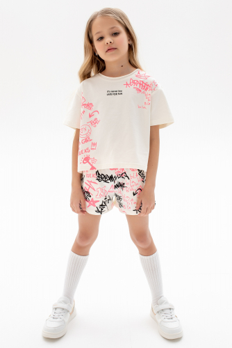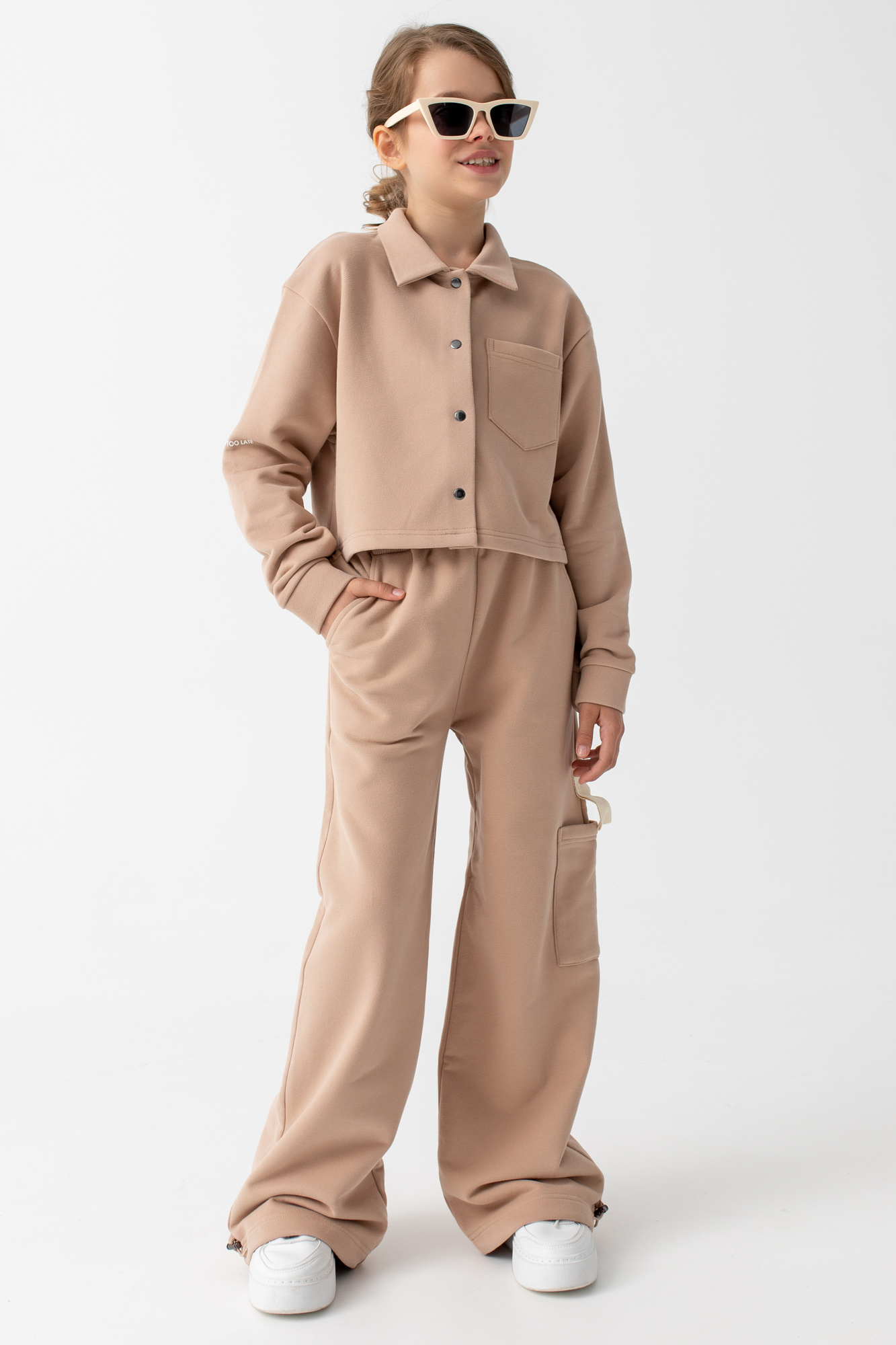 Состоит из укороченной рубашки свободного кроя, спереди