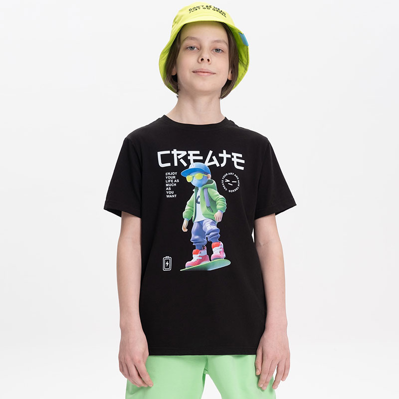 Состав: 100%хлопокОписание: Футболка для мальчика прямого кроя - это идеальный выбор для активного ребенка. Вырез горловины обработан эластичной тканью — она прекрасно держит форму, не растягивается, при этом ребёнку удобно надевать и снимать футболку. Изделие неприхотливо в уходе. Футболка летняя с принтом по переду и надписями в японском стиле. Перевод надписей: "create" - создавай, "enjoy your life as much as you want" - наслаждайся жизнью столько, сколько хочется. Яркая спортивная футболка подходит как для подростков так и для малышей в детский сад. Подходит для любого времени года.