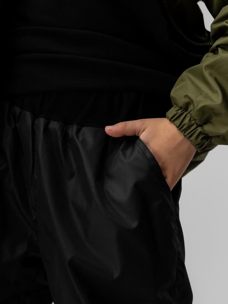 Материал Дюспо Состав 100% полиэстер высота упаковки, мм 4 Брюки детские из плотного и стойкого к изнашиванию и повреждениям материала Дюспо. Материал Дюспо: водоотталкивающий, воздухообменный и ветрозащитный. Состав основного материала Дюспо 100% полиэстер,подкладочный материал кулирная гладь 100% хлопок.
