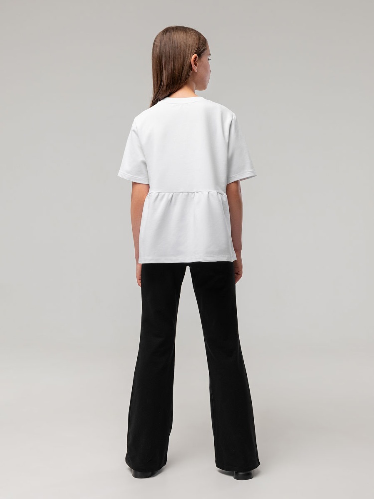Материал футер двухнитка Состав 92% хлопок 8% лайкра Брюки-клеш с вертикальными рельефами от талии до низа.