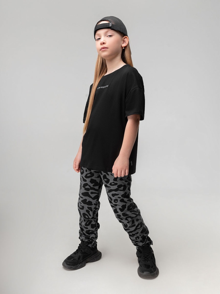Материал кулирная гладь Состав 92% хлопок 8% лайкра Брюки- джоггеры детские. Детали: полуприлегающий покрой, пояс - эластичная резинка, низ изделия- манжеты.