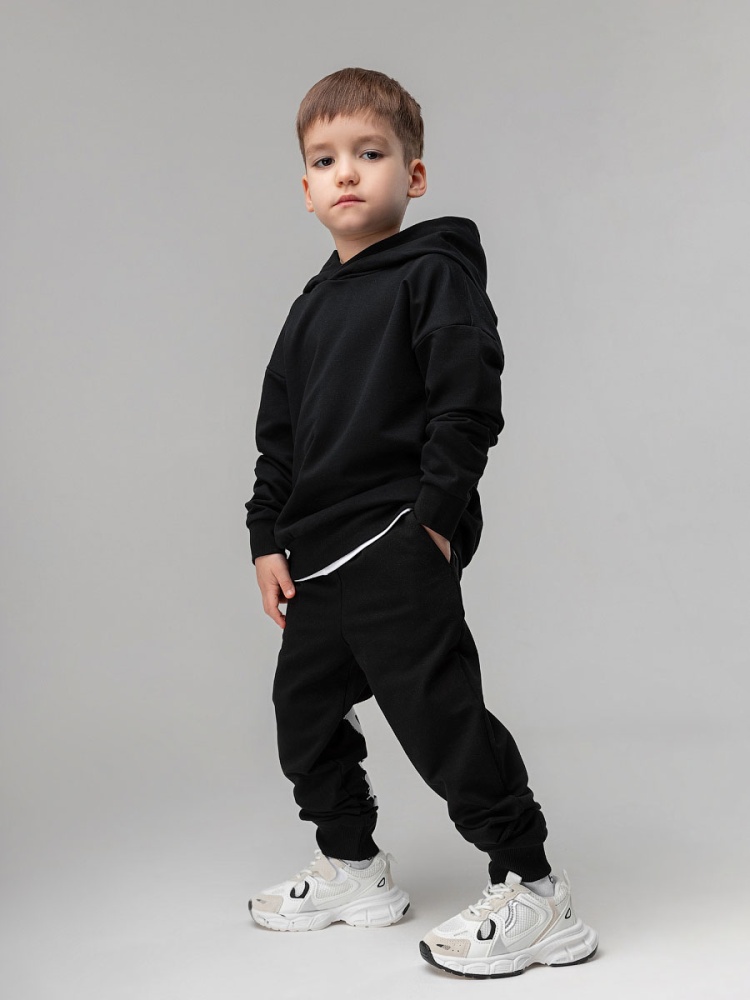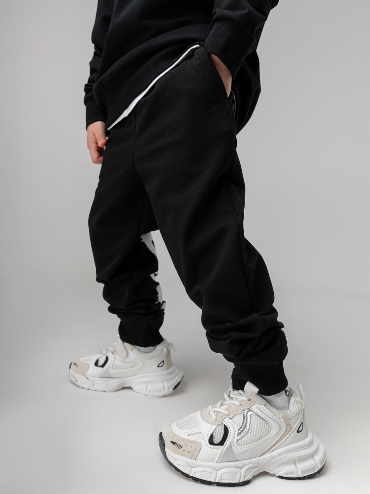 Материал футер двухнитка Состав 92% хлопок 8% лайкра Брюки- джоггеры детские. Детали: свободный покрой, пояс - эластичная резинка, низ изделия- манжеты. Состав: футер двухнитка 92% хлопок 8% лайкра