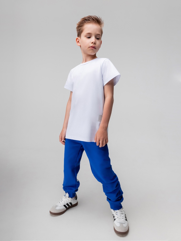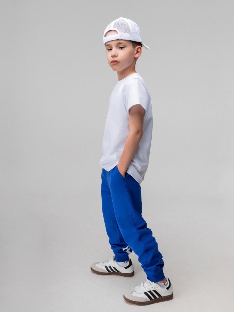 Материал футер двухнитка Состав 92% хлопок 8% лайкра Брюки- джоггеры детские. Детали: свободный покрой, пояс - эластичная резинка, низ изделия- манжеты. Состав: футер двухнитка 92% хлопок 8% лайкра
