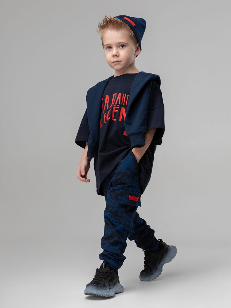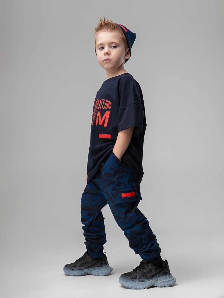 Материал футер двухнитка Состав 92% хлопок 8% лайкра Брюки спортивные для детей дошкольного возраста. Брюки прямые свободные на притачном поясе с внутренней резинкой, на притачной манжете по низу изделия. Брюки с боковыми карманами. На левом боковом шве расположен накладной карман с клапаном.