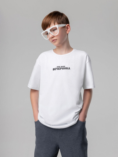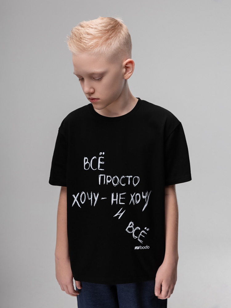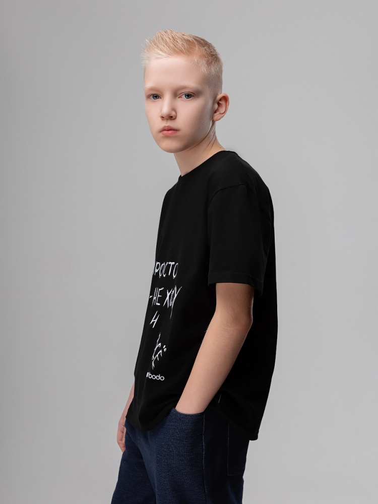 Материал кулирная гладь Состав 92% хлопок 8% лайкра Футболка для детей школьного возраста. Футболка свободного силуэта с втачным коротким рукавом. Горловина футболки округлой формы. Низ изделия прямой. На полочке и спинке располагается принт.