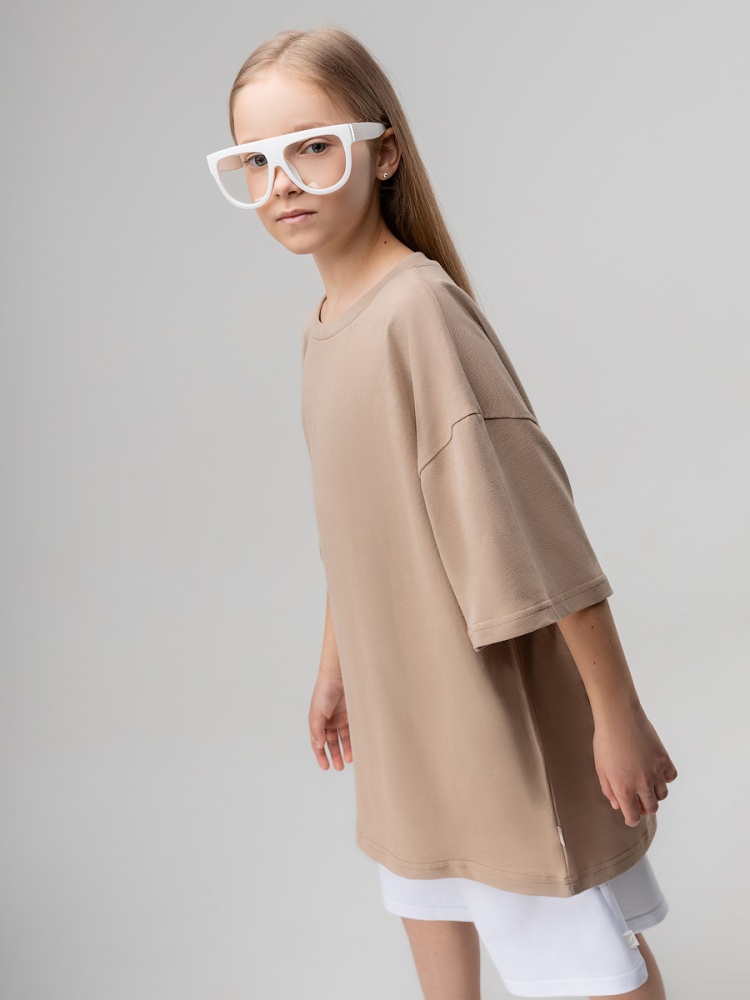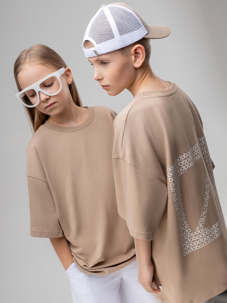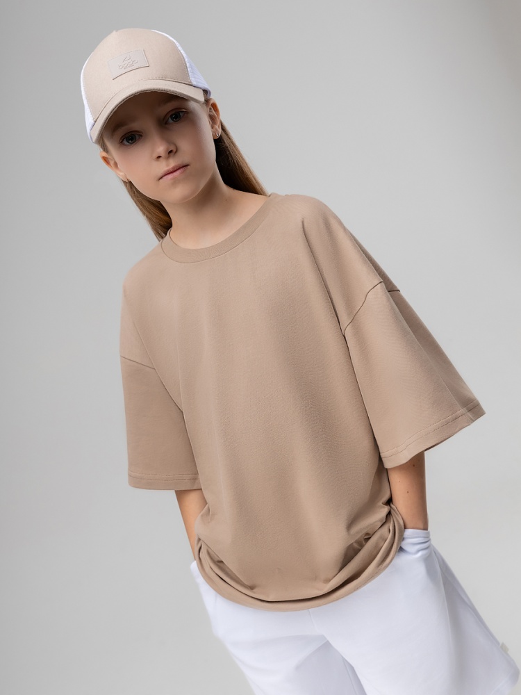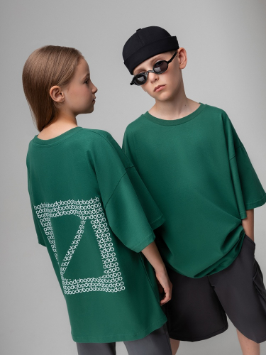 Материал кулирная гладь Состав 100% хлопок Футболка для детей школьного возраста. Футболка свободного силуэта с втачным коротким рукавом. Горловина футболки округлой формы. Низ изделия прямой. На спинки располагается принт.