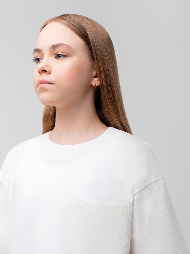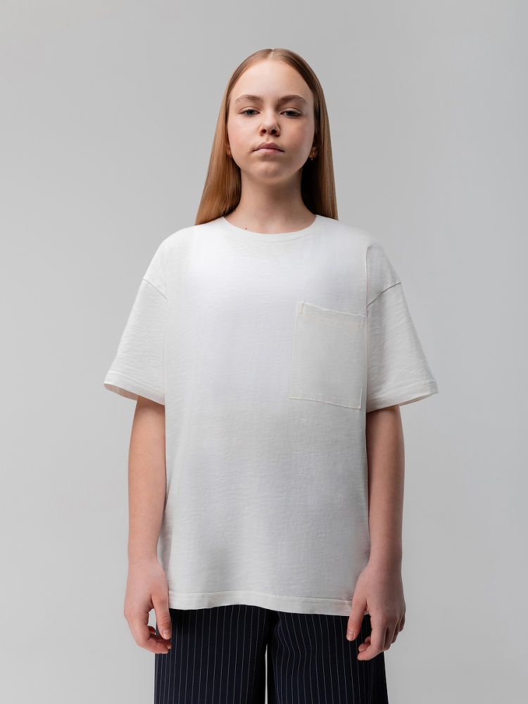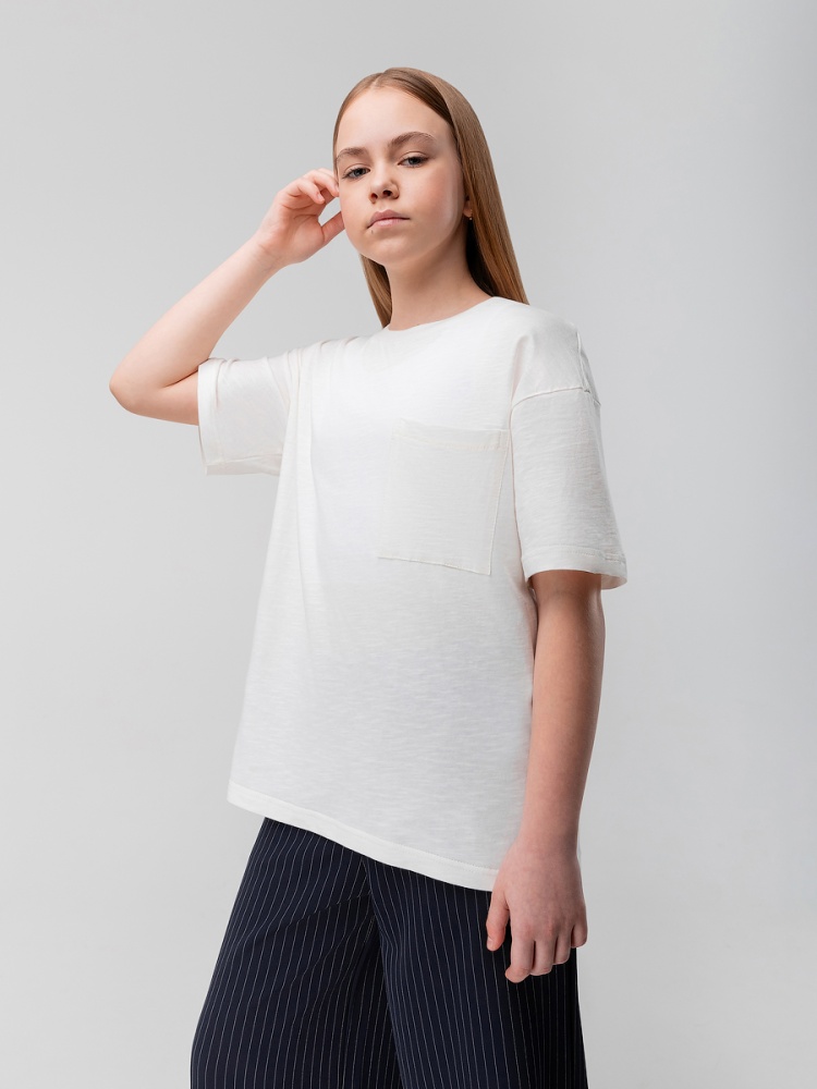 Материал кулирная гладь Состав 100% хлопок Свободная футболка с накладным карманом.