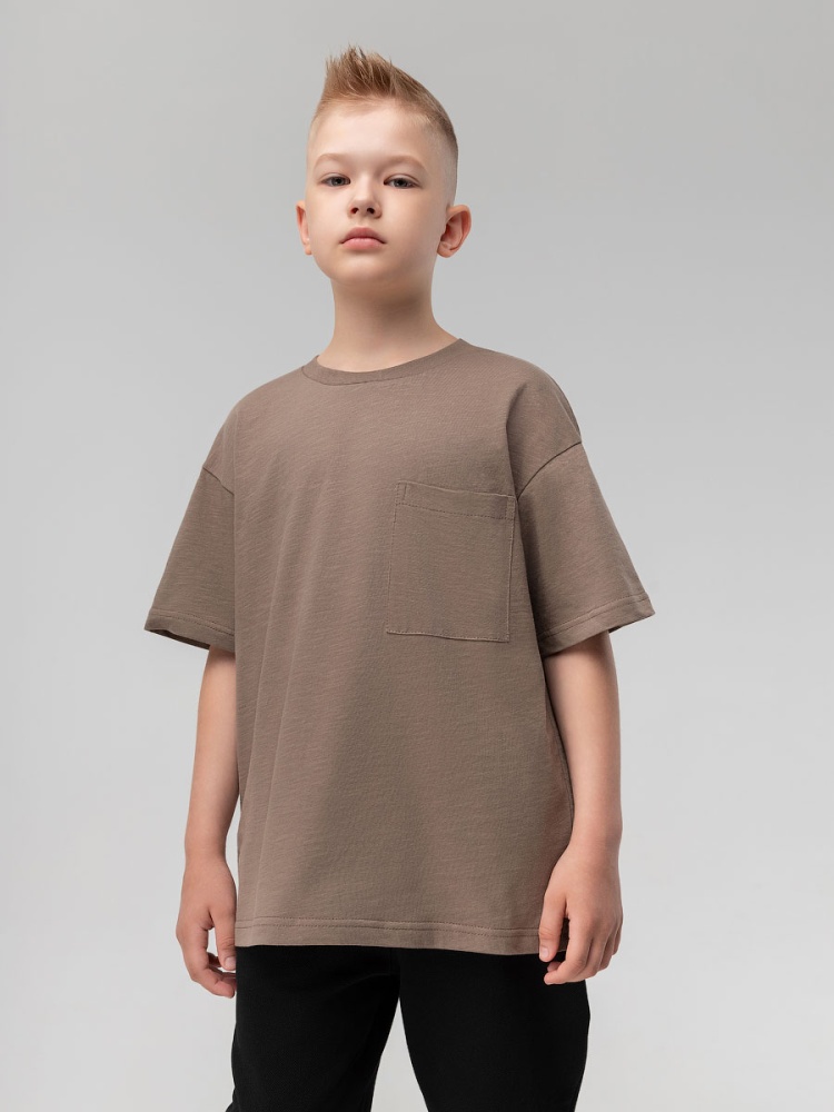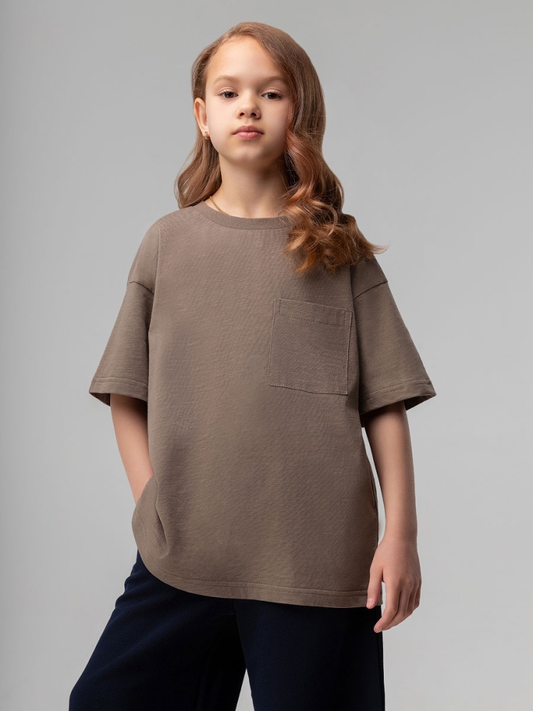 Материал кулирная гладь Состав 100% хлопок Свободная футболка с накладным карманом.