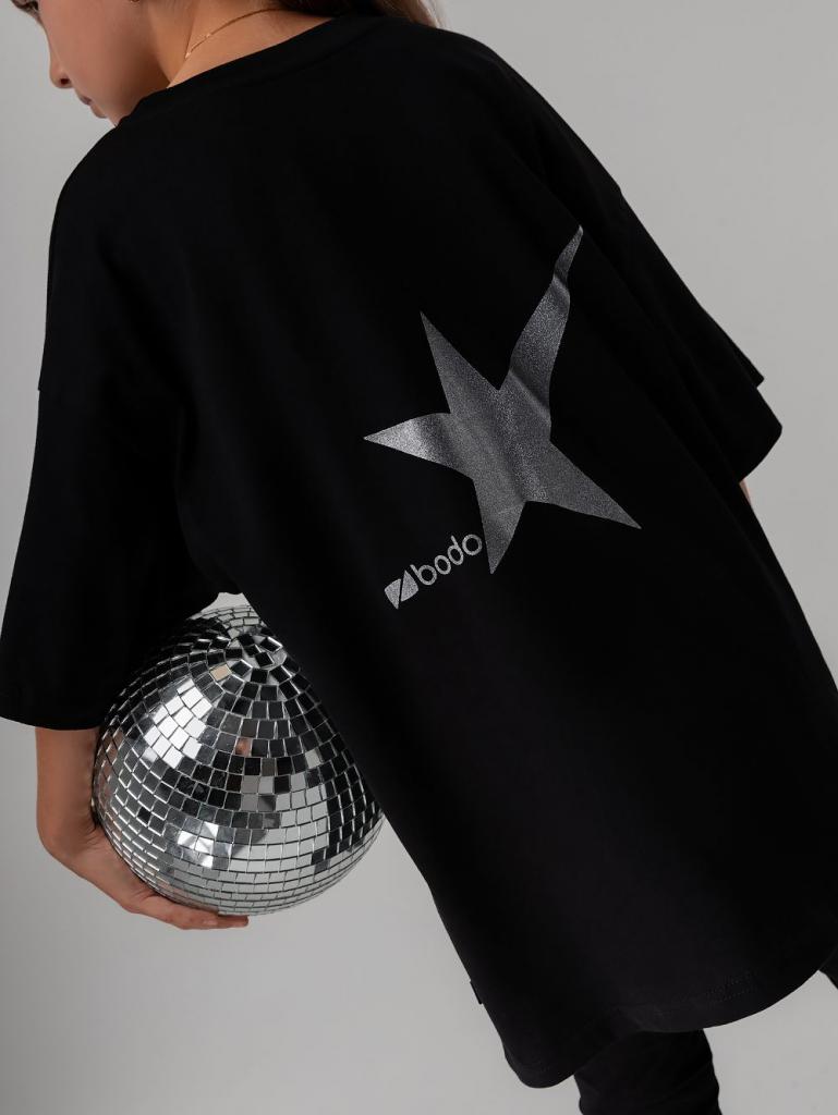 Артикул 36-148MU Материал кулирная гладь Состав 100% хлопок Свободная футболка с коротким рукавом. Горловина футболки округлой формы. Низ изделия прямой. Принт на спинке "звезда"