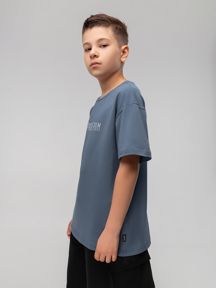 Материал кулирная гладь Состав 92% хлопок 8% лайкра Футболка детская с принтом. Футболка свободного, прямого силуэта с втачным коротким рукавом, горловина округлой формы. Состав: кулирная гладь 92% хлопок 8% лайкра
