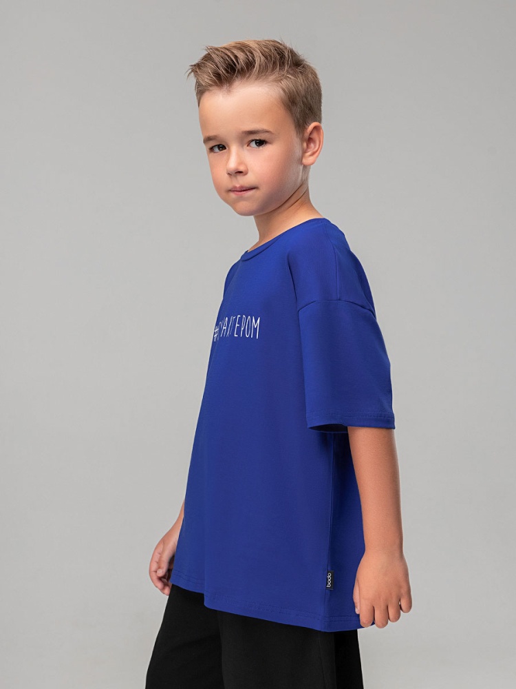 Материал кулирная гладь Состав 92% хлопок 8% лайкра Футболка детская с принтом. Футболка свободного, прямого силуэта с втачным коротким рукавом, горловина округлой формы. Состав: кулирная гладь 92% хлопок 8% лайкра